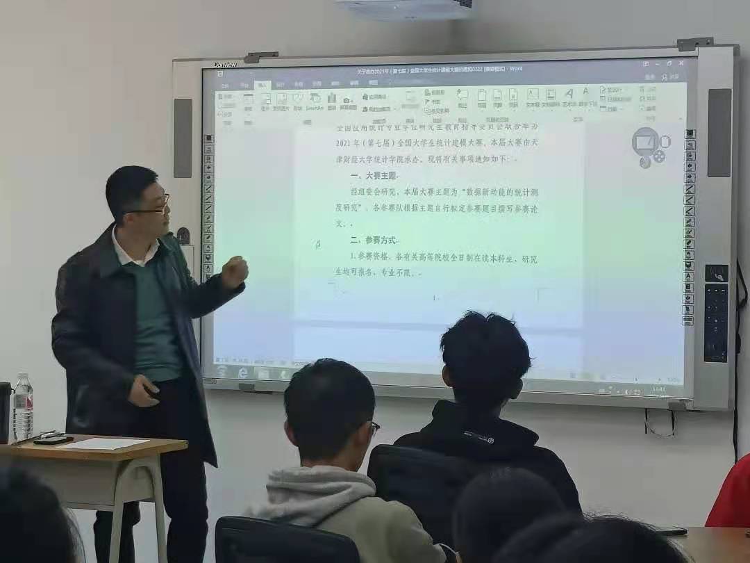 本次邓秉德老师针对这次比赛的主题,向同学们提出了自己的独到理解和分享,老师建议比赛论文应该具有社会性,能够通过社会新数据经济的发展展开自己的论文选题,并且邓老师还分享往届优秀作品,为同学论文选题提供了思路,建议同学们分工明确,提高效率,能够较好的掌握统计+的思想。