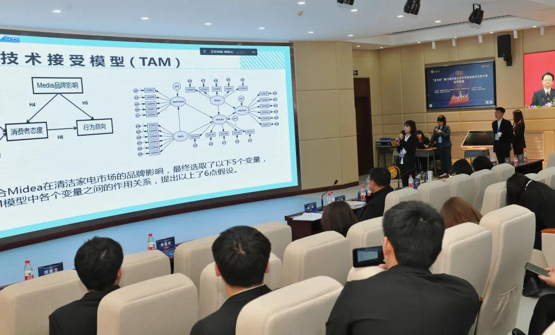 开幕式后,第十一届全国大学生市场调查与分析大赛吉林省赛决赛正式开始。决赛由经济统计1758班赵煜辉和经济数据工程实验班18级田梦新共同主持。本次省赛由我校统计学院承办,共有19所省内高校、2200多名学生参赛。各高校开展校赛选拔共有80支队伍进入省赛,通过省赛初赛再选拔,来自于吉林大学、东北师范大学、吉林财经大学、长春工业大学、吉林外国语大学的8支队伍晋级省赛决赛。市场调查与分析大赛省赛决赛分为报告展示和现场答辩两个环节。选手们依次进行PPT现场汇报展示,他们沉着冷静、侃侃而谈,对调查主题、调查方式、分析方法与结论建议等方面进行了详细的讲解。在现场答辩环节中,参赛队伍能条理清晰地回答评委老师的问题,展现出扎实的专业知识基础和现场应变能力。8支队伍均完成比赛环节后,厦门大学曾五一教授作了总结性点评,他对选手们深入生活、结合社会热点的选题给予充分肯定,赞扬了选手们将统计方法与实际问题相结合进行深入研究的探究精神,并就调查选题、统计方法、研究结论、观点陈述四方面提出了专业性的修改完善建议。最终,线上线下评委根据竞赛作品、现场汇报和答辩情况综合打分,评选出前4支优秀队伍,代表吉林省普通本科高校参加国赛。
