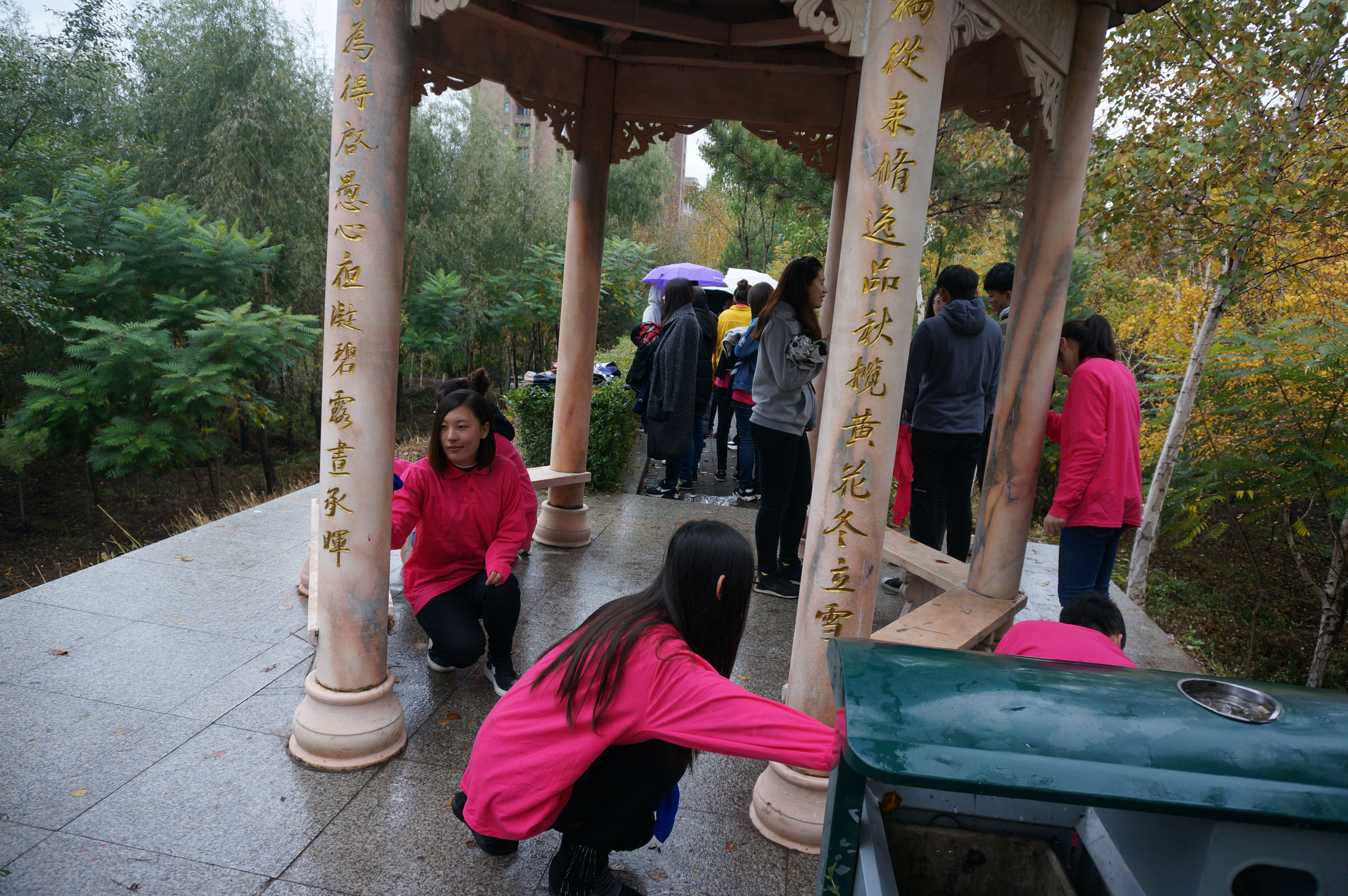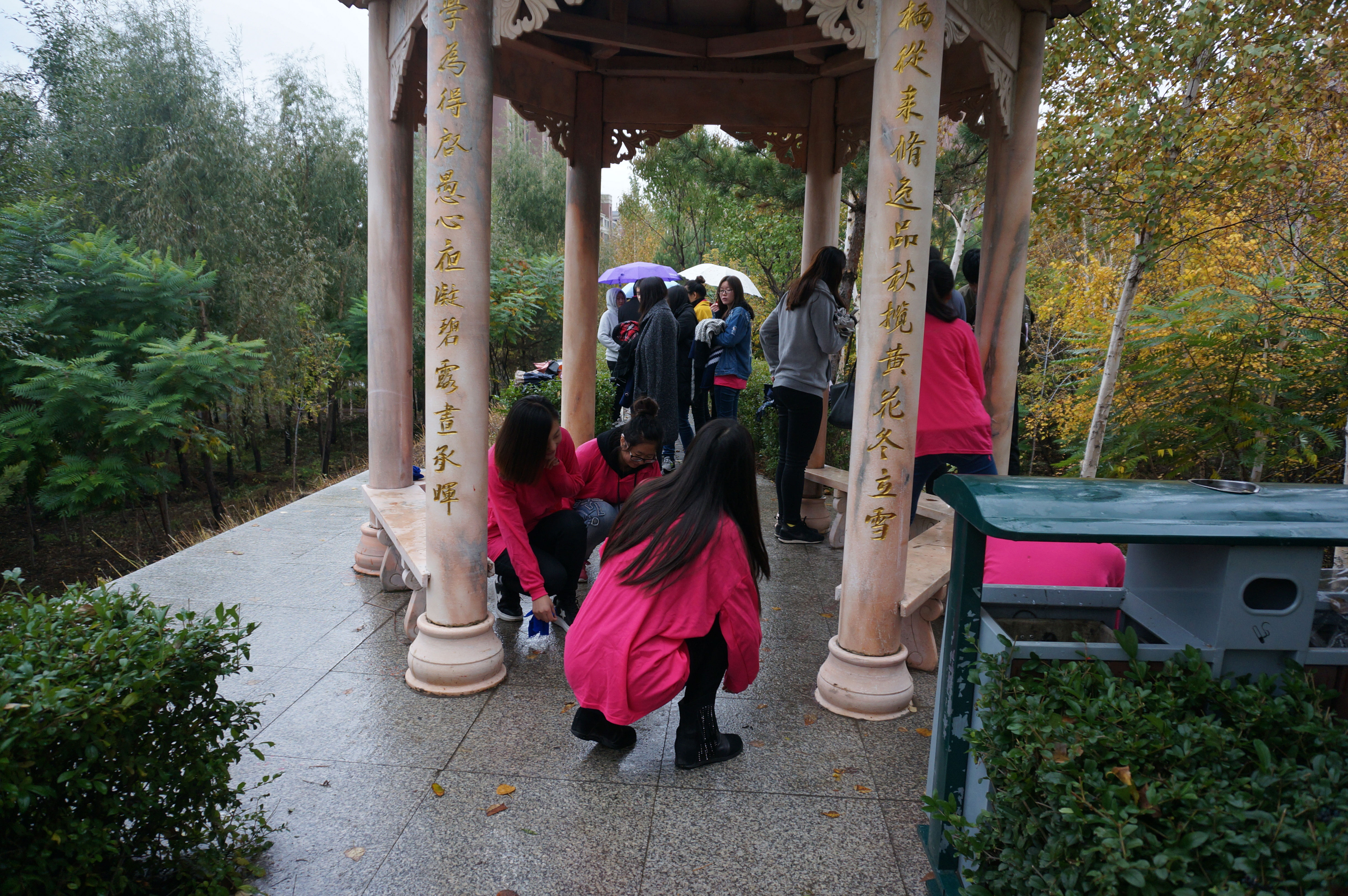 校园行,行走步步皆为欢欣;迎校庆,庆生年年俱为深情。中午12时,我们怀着对母校的崇敬之心、对学院未来的憧憬之情,沿着既定路线出发到隅山亭进行例行清扫。从1946到2016,峥嵘岁月,财大走过漫长的70年,从一二食堂间到隅山亭,风雨兼程,我们走过数十个70步。用每一步的时间细数与财大共度的点点滴滴,用每一步的距离丈量统计学院的发展历程。隅山亭上饱览财大美景,即便秋意正浓依旧感受到统计学院校友对母校的拳拳之心。