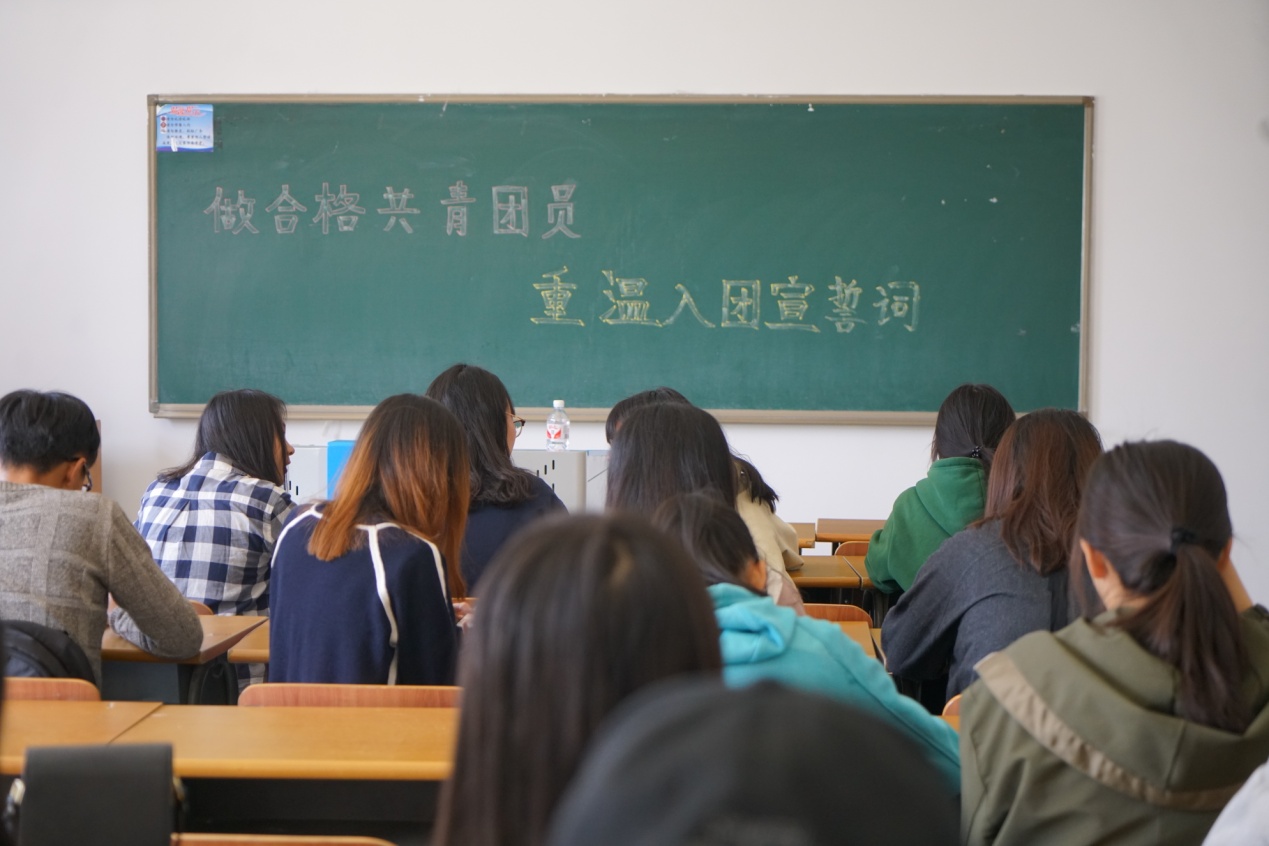 全体团员在团支书的带领下宣读入团誓词,重温誓词后,同学们再次明确了自己必须要有作为一名团员的责任感,并时刻铭记对团员的要求及党对青年团员的期许。