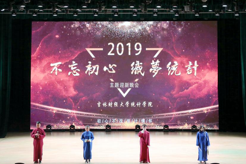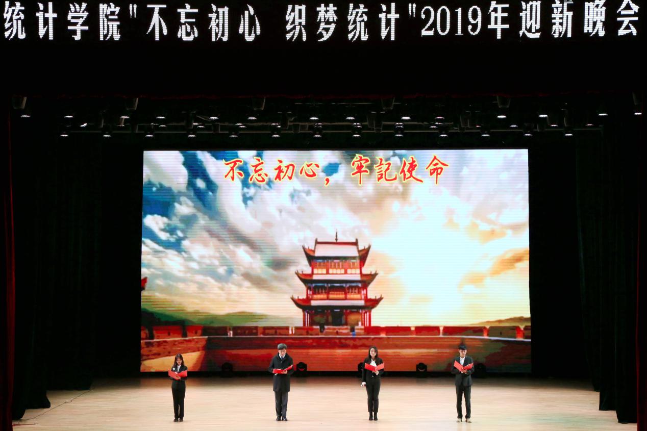为贯彻统计学院“不忘初心、牢记使命”主题教育理念,全面落实党的教育方针,统计学院于2019年11月27日下午一点半在学术中心举办了以“不忘初心、织梦统计”为主题的迎新晚会。出席本次活动的嘉宾和领导有校团委书记刘成立、学生工作处副处长赵彦双、招生就业处副处长竭岸扬、统计学院院长兼教务处处长马秀颖、统计学院副院长李国荣和统计学院党总支副书记孙成伟,统计学院全体师生参加了此次活动。