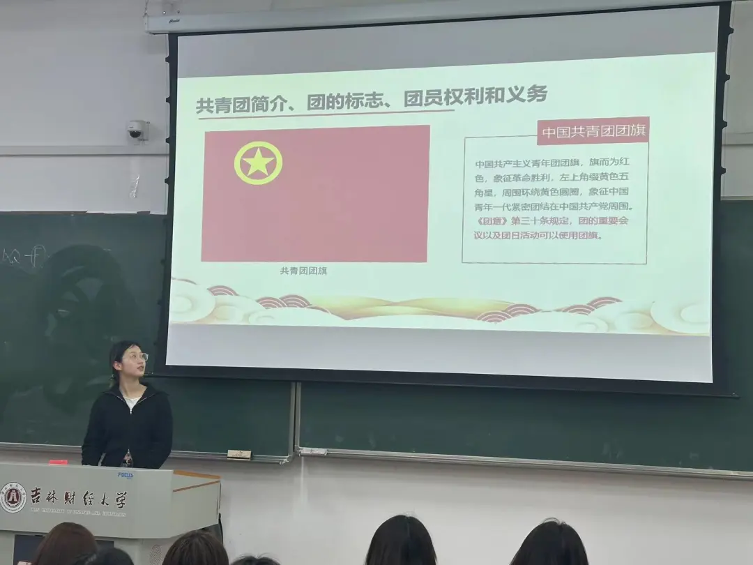 主持人介绍了共青团的光辉历程,以及团旗和团徽的深刻含义,让新团员们对团有了更深刻的认识。