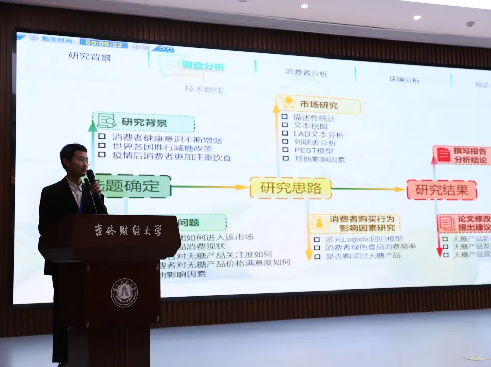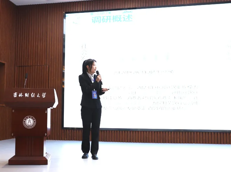 大赛分为报告展示和现场答辩两个环节。在报告展示环节中,选手们在展示PPT的同时,对调查主题、调查方式、分析方法与结论建议等方面进行了详细的讲解。