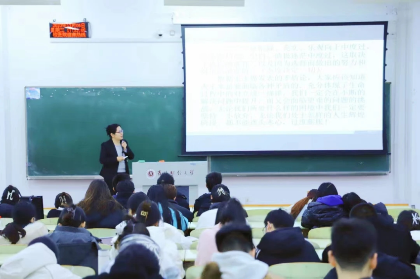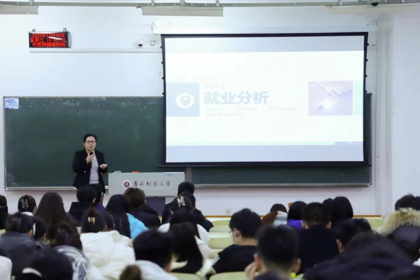 讲座主要围绕毕业生未来发展的三个主要选择方向,即直接就业、攻读研究生、出国留学。她告诉同学们,无论选择哪个方向,都不用压力太大,可以结合自身适当调整目标。