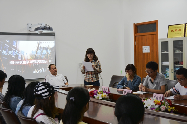 本网讯(统计学院 供稿)6月5日晚,由统计学院研究生党支部主办,统计学院全体研究生在学院会议室举行了“忆财大情,畅青春梦”研究生学习经验交流会。本次交流会邀请了2011级研究生签约人民银行重庆分行的李林峰同学,签约吉林银行长春分行的尚峰同学,签约吉林工商学院的宫海欣同学,签约延边邮储银行的王丹同学,考取中南财经政法大学博士研究生的罗胜同学为研一、研二同学做了学习、就业经验交流会。统计学院党总支副书记蒋武鹏老师参加了此次交流会。
