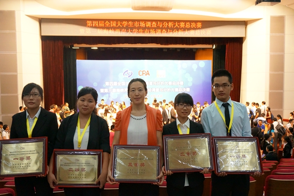 此次比赛由副院长马秀颖、经济统计系主任陈知之和院团委书记李春会带队。我校参赛队伍不负众望,在来自全国985、211等83所高校210支参赛队中脱颖而出,获得多项大奖。在第四届全国大学生市场调查与分析大赛总决赛中,由马敏娜教授指导,袁小荣、王瑞芳、张妍、安佳撰写的《我国“单独二胎”政策下居民生育意愿的调查报告》获得了一等奖,并入围第三届海峡两岸市场调查与分析大赛总决赛,获得了三等奖。由马秀颖副教授指导,鄂英华、卢扬、谢鑫撰写的《吉林省农户借贷现状调查报告》获得了一等奖。由王静敏教授指导,张冰、张茗涵撰写的《吉林省农村留守儿童现状调查》和由孙雅静教授指导,阚月、马春蕾、李雪、赵浩源撰写的《东北区域女性就业状况调查报告》获得了二等奖。