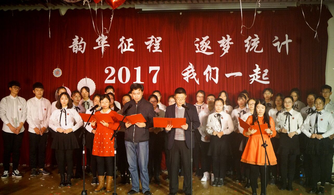 为迎接2017级新生的到来,展现我院学子风采,11月8日下午两点,第九届统计文化艺术节闭幕式暨迎新晚会于1101教室隆重举行。出席本次晚会的嘉宾有统计学院院长马秀颖、党总支书记曲晓东、副院长陈知之、党总支副书记孙成伟以及统计学院全体教师、各兄弟学院学生会主席及分团委副书记。