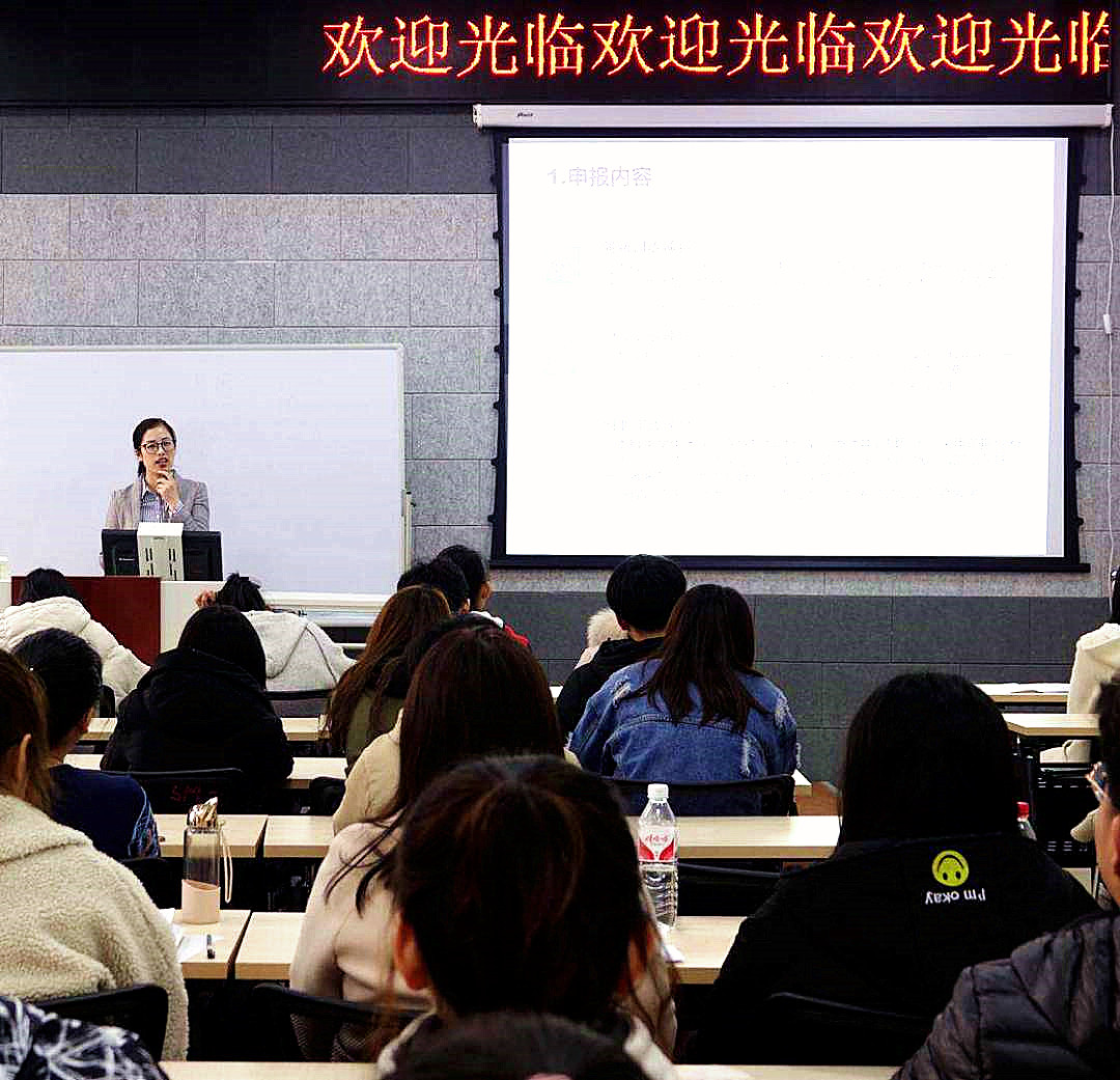 首先,王永莲老师发表讲话,结合当前大学生创新创业形势,深度解读了大学生创新创业训练计划项目的含义,并结合相关案例详细讲解了该项目的申报流程,为同学们指明了方向。