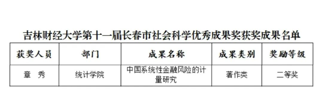 近日,第十一届长春市社会科学优秀成果奖评选结果隆重公布。我院优秀教师章秀,凭借卓越的学术成就和深厚的专业素养,在众多参评者中脱颖而出,荣获第十一届长春市社会科学优秀成果奖二等奖。
