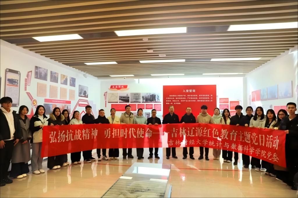 为深化党员理想信念教育,传承红色基因,10月24日—25日,统计与数据科学学院教工党支部联合学生党支部赴辽源开展“弘扬抗战精神,勇担时代使命——吉林辽源红色教育”主题党日活动,通过实地探访红色遗址、专题学习研讨,在回望历史中汲取奋进力量。
