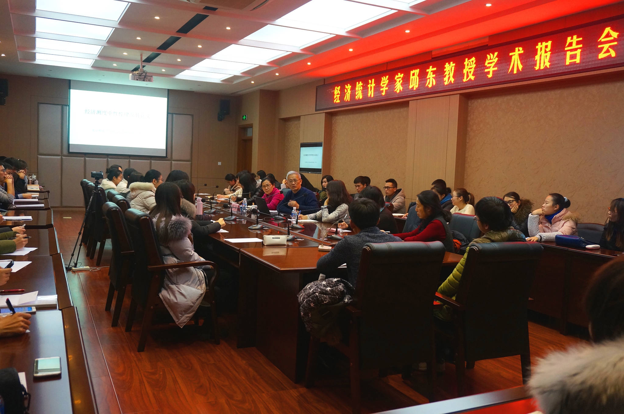 12月12日,北京师范大学邱东教授为我校师生做了《经济测度中性悖论及其意义》和《财经类院校统计学科建设与发展》的两个主题报告。统计学院师生参会,报告会由统计学院院长马秀颖教授主持。