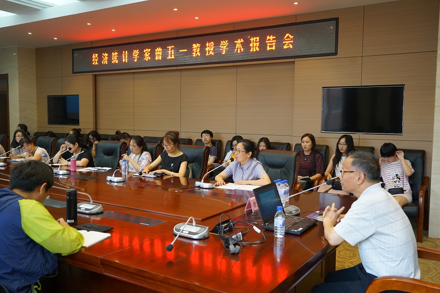 2017年6月30上午,我院特邀教育部统计学类专业教学指导委员会主任委员、厦门大学与上海对外经贸大学特聘教授曾五一来我校做主题为《关于新经济统计核算理论与方法若干问题的思考》的学术报告。我院全体教师及研究生参加了此次报告会。