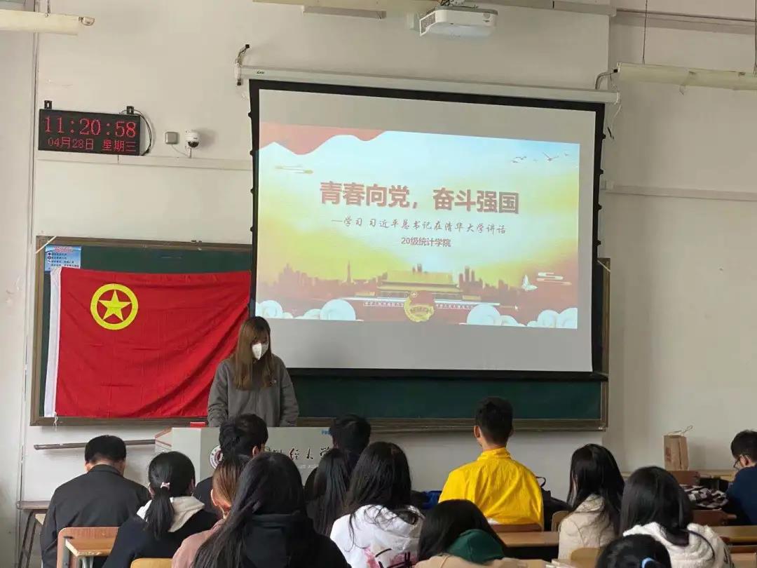 2021年5月5日,统计学院团委组织20级团支部开展了“青春向党,奋斗强国”——学习习近平总书记在清华大学考察讲话的主题活动。深入学习贯彻习近平总书记重要讲话精神,对于切实落实立德树人根本任务,与时俱进建设中国特色世界一流大学和高质量教育体系,着力培养德智体美劳全面发展的社会主义建设者和接班人,具有十分重要的意义。