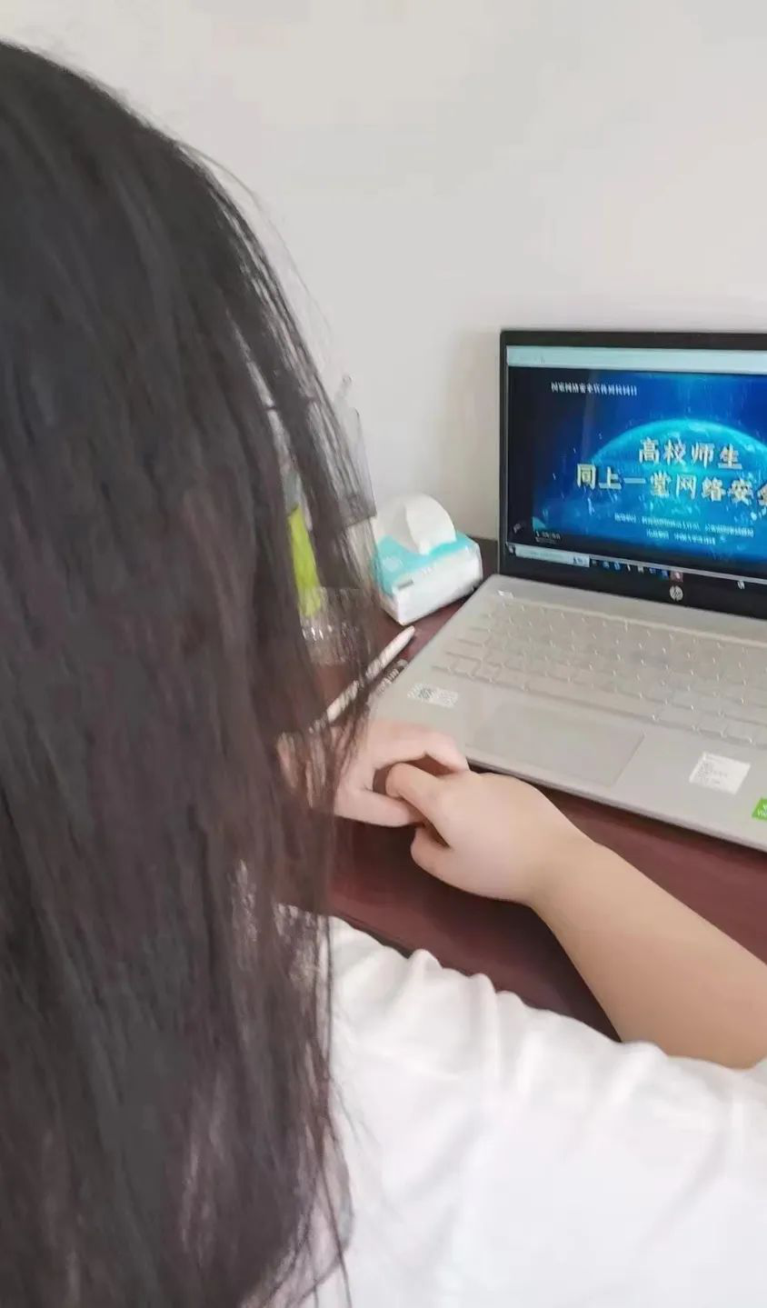 我院根据教育部思想政治工作司、公安部刑事侦查局指导中国大学生在线推出“高校学生同上一堂网络安全课”,采取线上发布课程的形式,统计学院的同学们共同上一堂覆盖各方面网络安全知识的网络安全课,同学们也将课堂上涉及到的安全知识牢牢记住。并自发进行了课后的讨论,表示会承担起青年一辈的责任,自觉抵制电信网络诈骗,努力营造绿色友好的网络安全氛围。